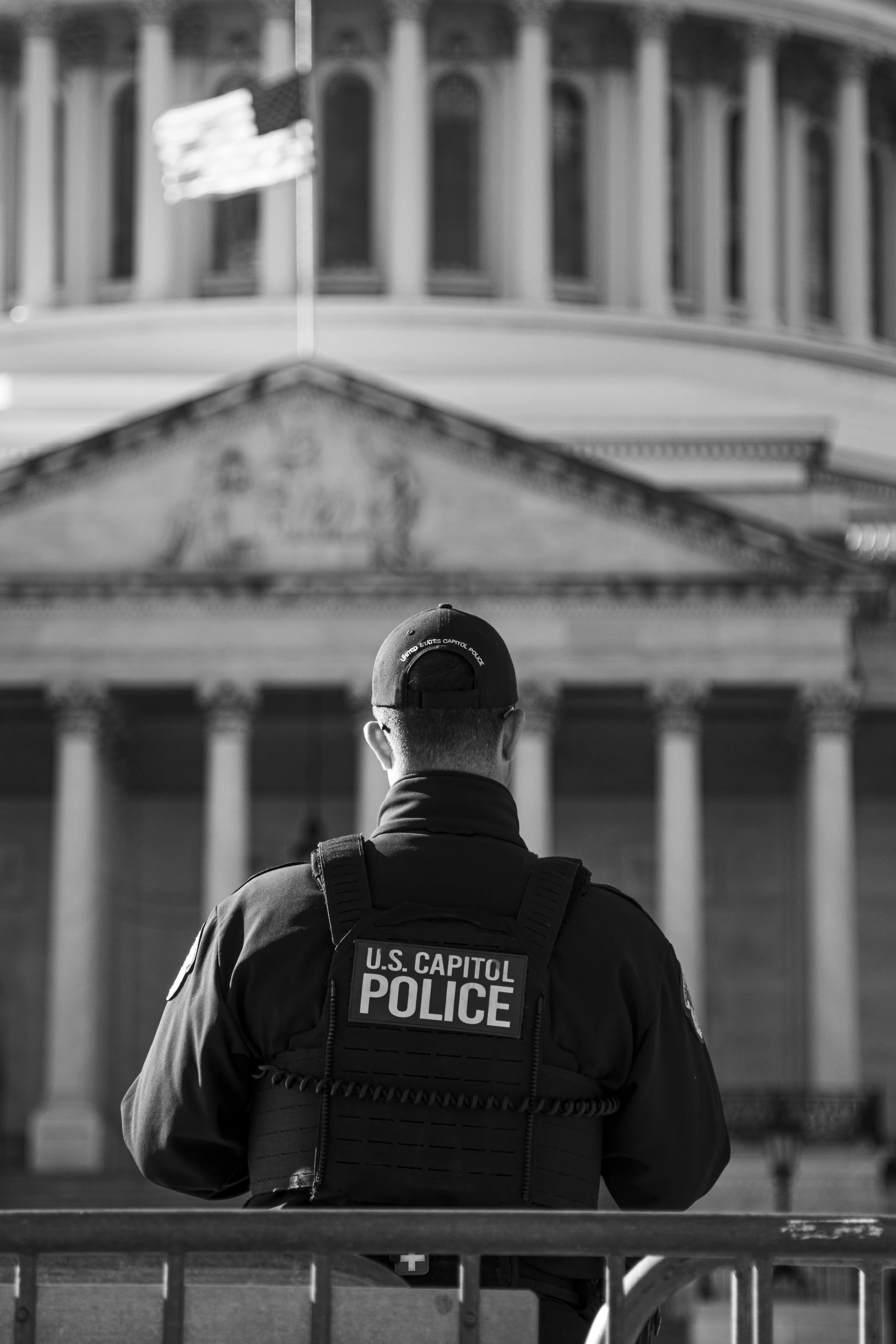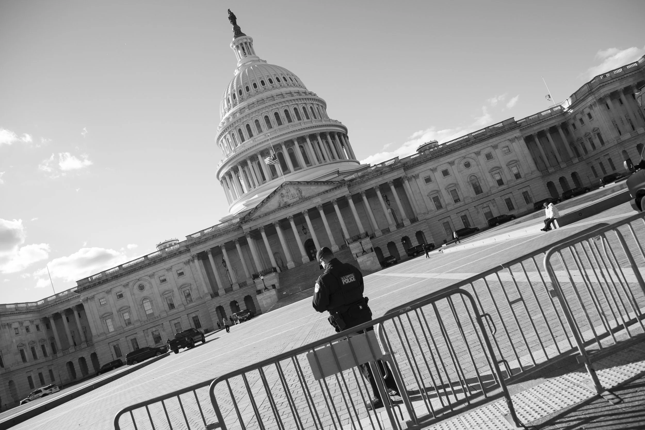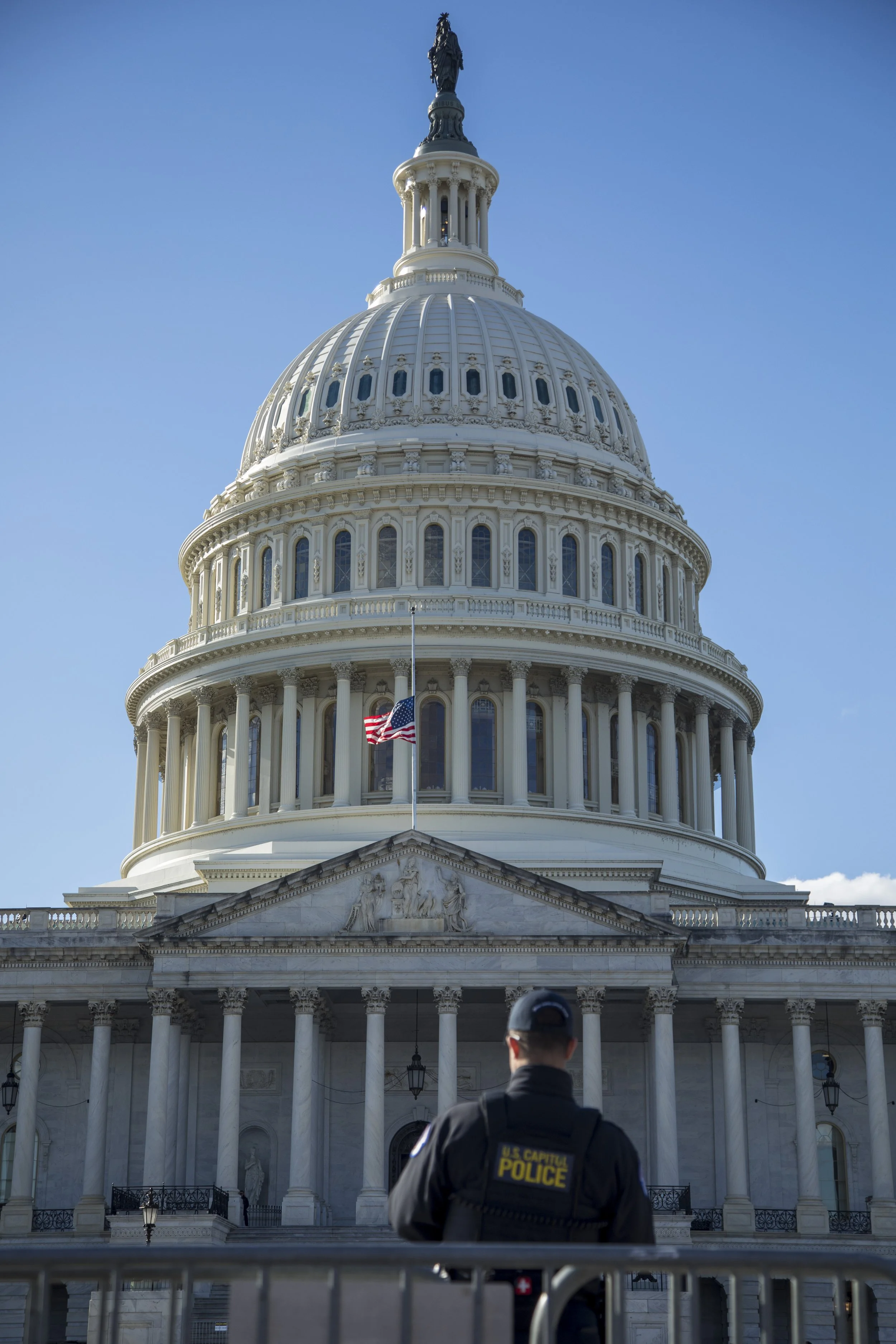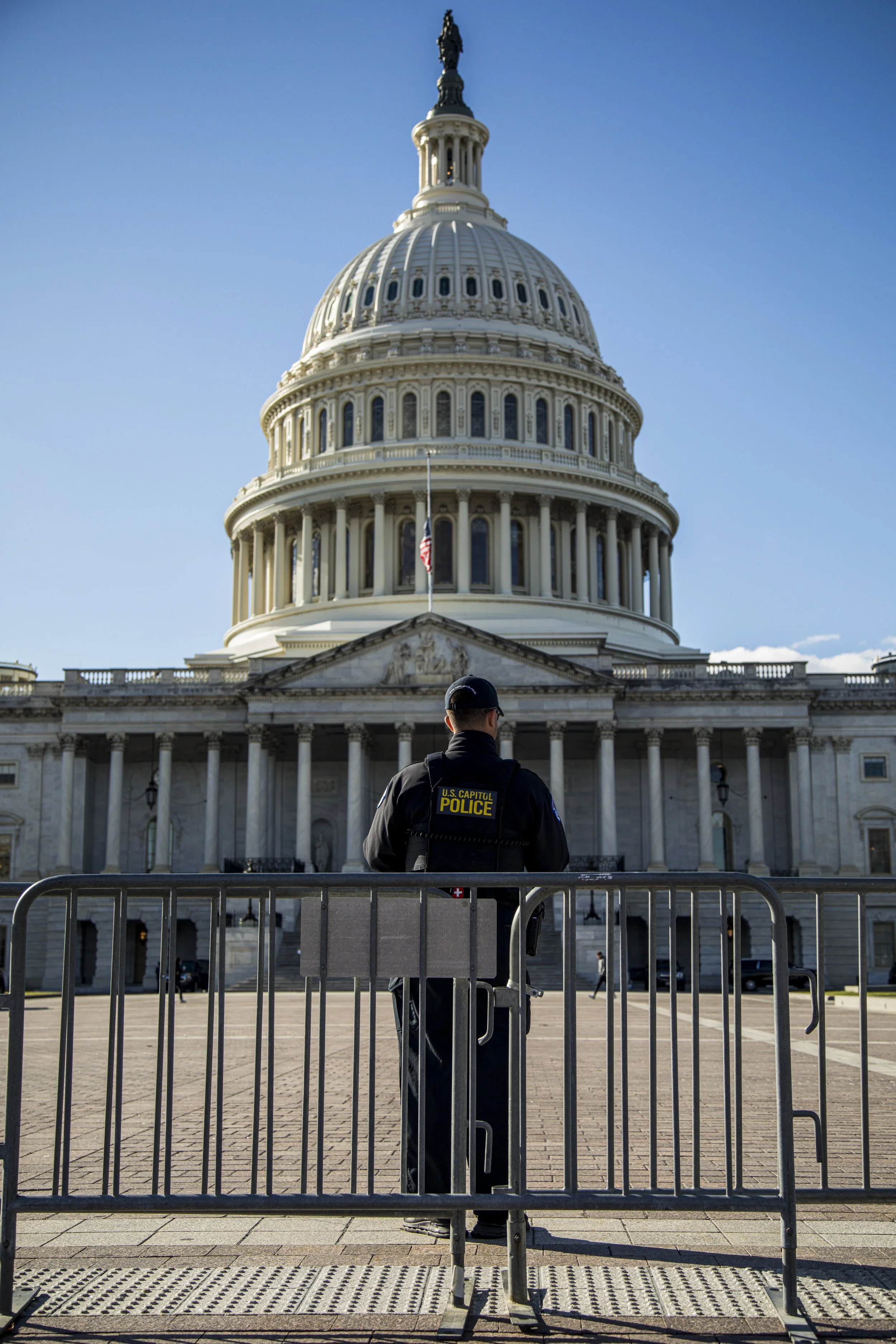 A Capitol police officer stands in front of the Capitol Building in Washington, D.C., Nov. 10, 2025.